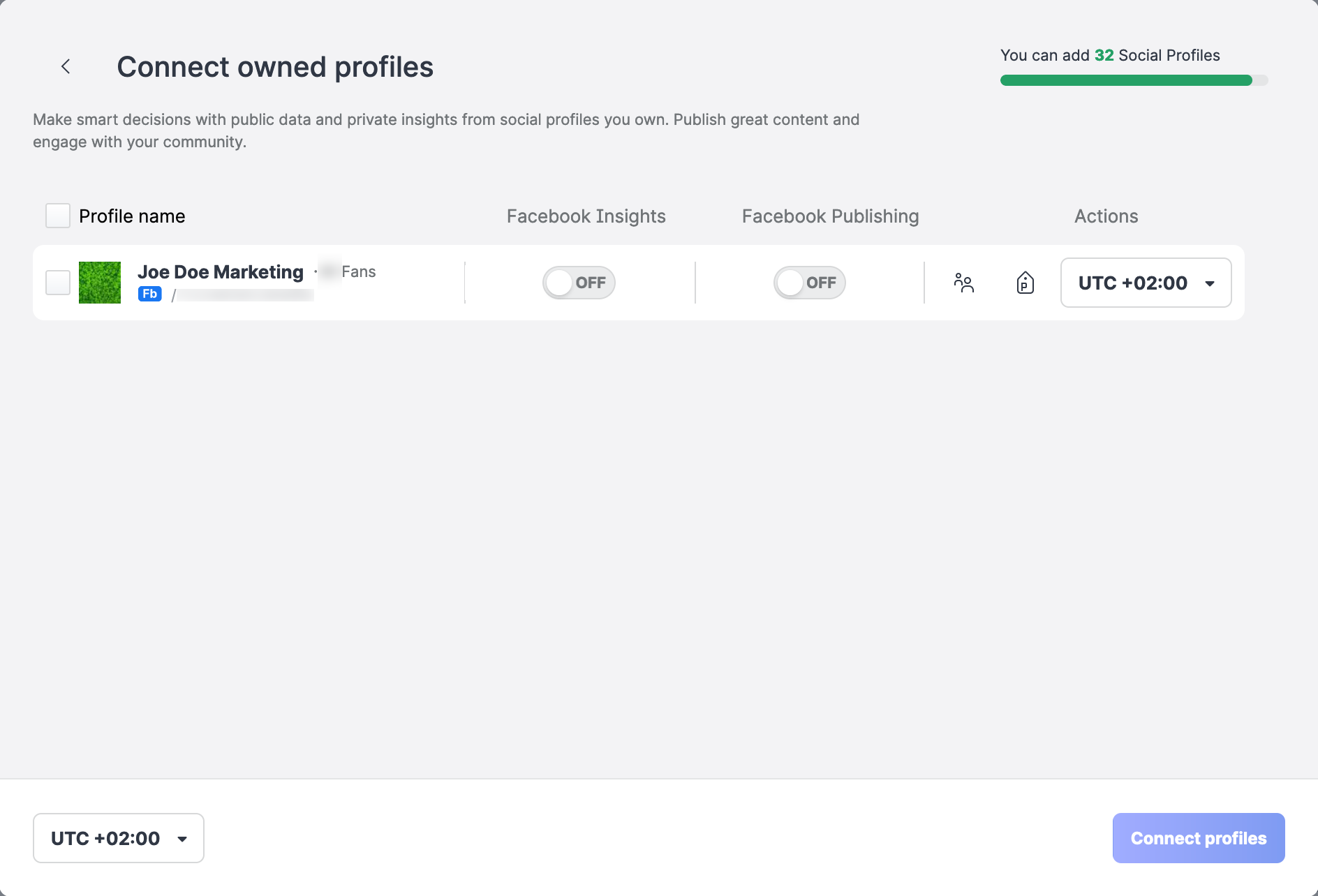 Add a Facebook page that you own or manage as an owned (private) profile to your Emplifi account. Having a Facebook page as an owned profile allows you to see the insights of the page and to post content to the Facebook page directly from Emplifi.