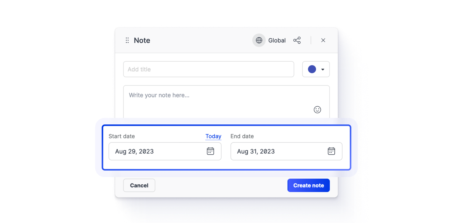 To do so, set the start and end dates when creating a new note.