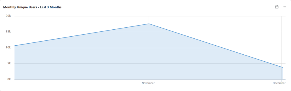 On the Analytics Dashboard, there are widget spaces where you can add a customized selection of reports. The top row contains four small widget spaces where you can display report snapshots, and the bottom two rows each contain a large widget space that displays your data through trend graphs, allowing you to view how your data has changed over time.