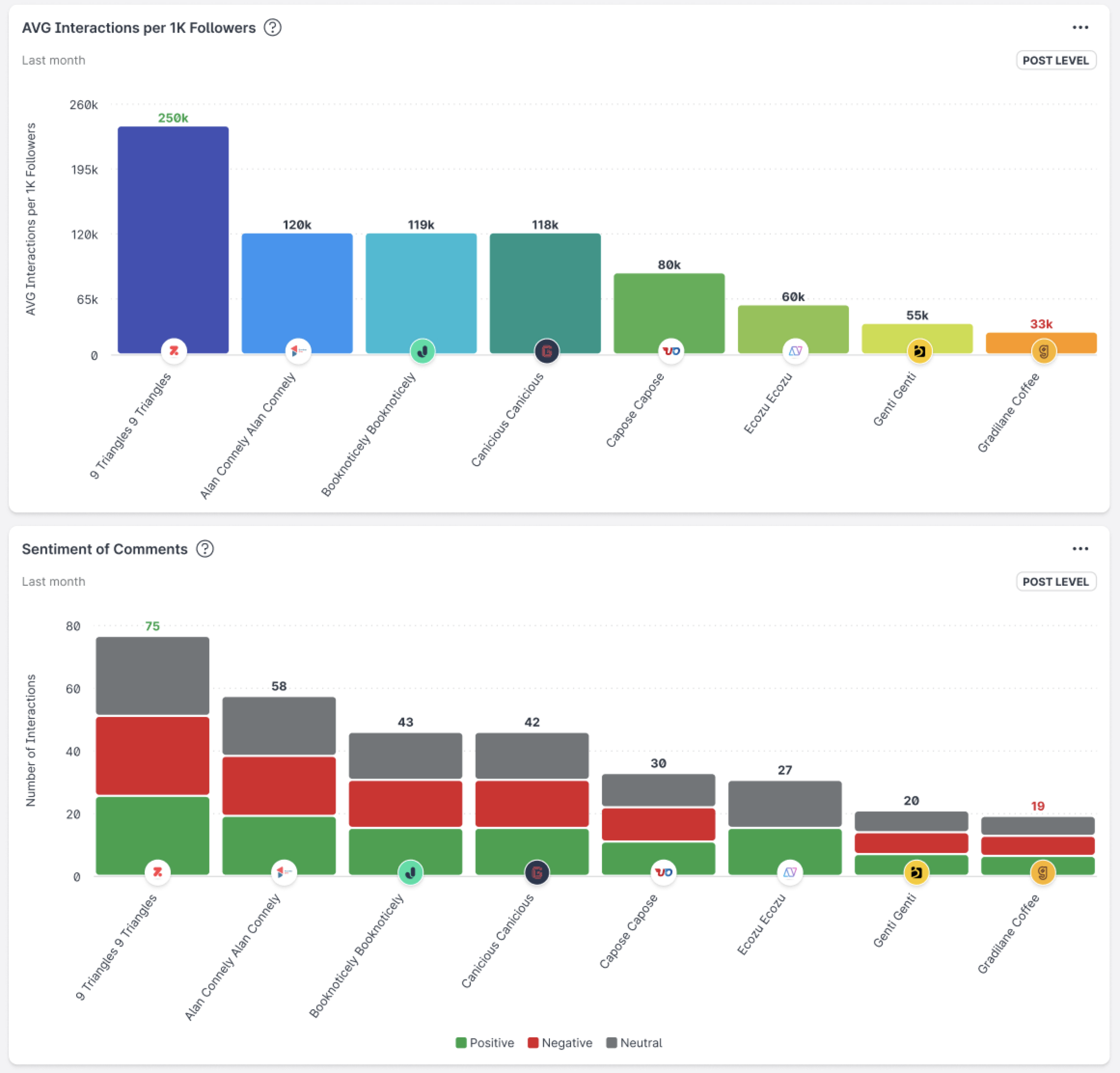 In the following scenarios, we look into how a global Brand, with multiple region-based profiles across several social networks, can use individual comparison methods to assess various aspects of the brand’s social media efficiency.