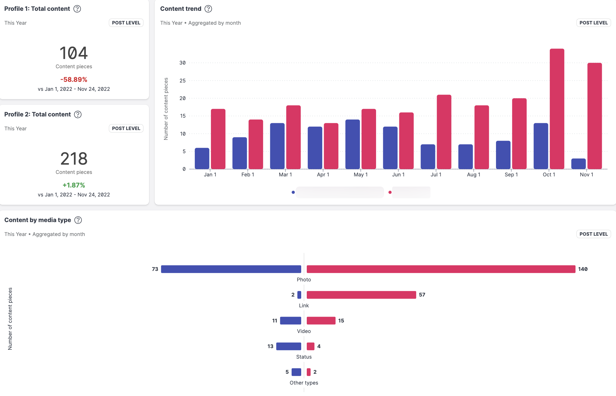 Profile vs Profile comparison allows you to create a detailed insight into, for example, how your Facebook US compares with Facebook Europe.