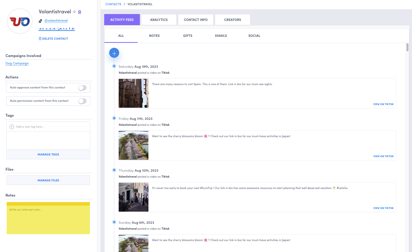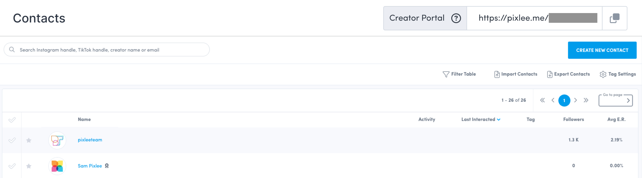 You can save the Influencers you want to work with to your Contacts. By adding Influencers to your Contacts, you can easily access all of the creators you work with from one centralized location.