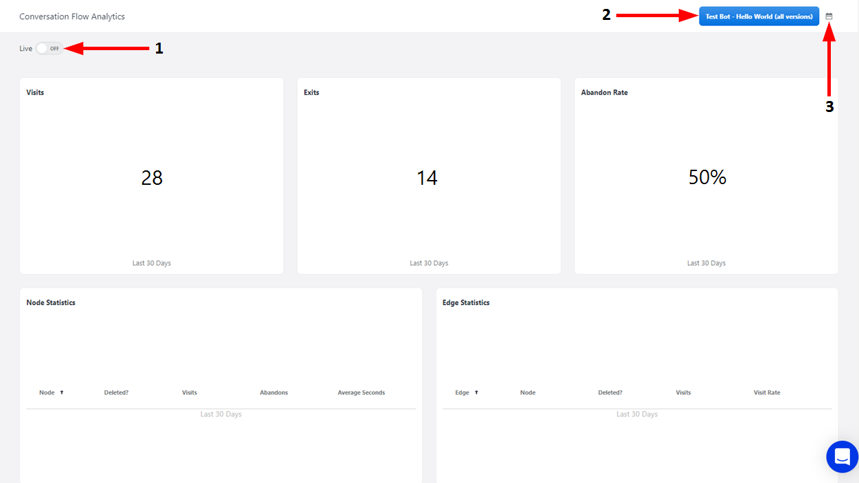 1 | Live ON/OFF Toggle | Click here to choose whether or not live conversation flow analytics appear in the reports. |