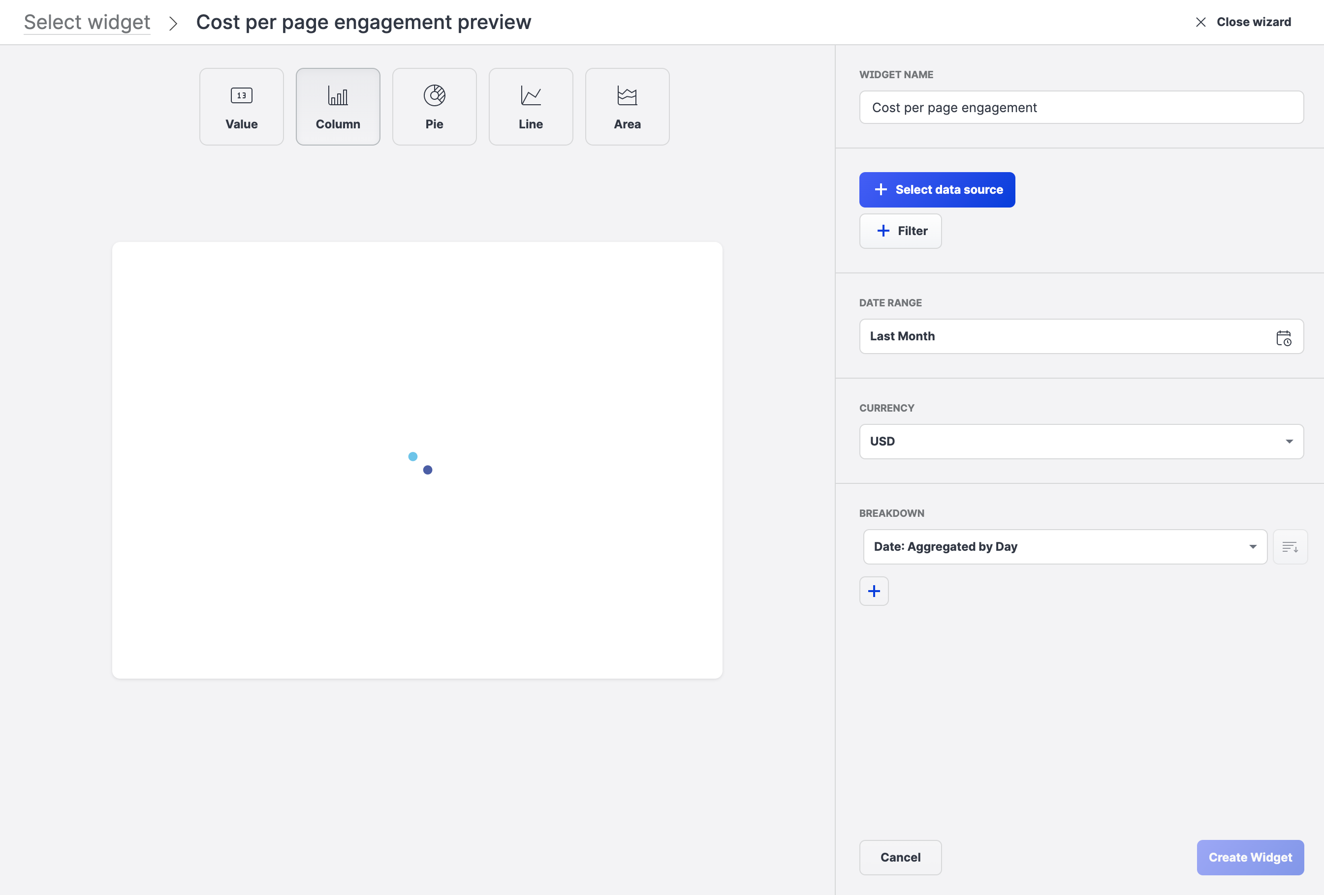 To build a dashboard, you use widgets. You can think of widgets as predefined metric containers that you can configure to visualize just the data that you are interested in. To learn more, see Working with Widgets and Metrics in Dashboard.