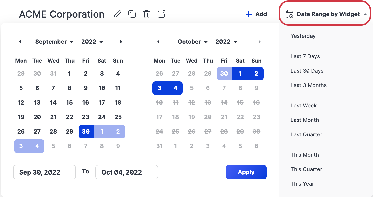 Setting the global date range for the dashboard overwrites date range settings in individual widgets.