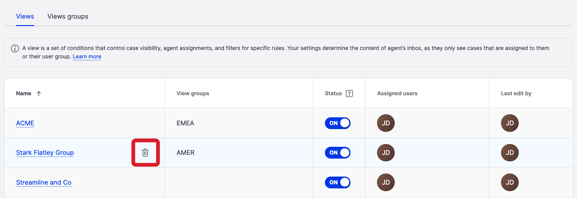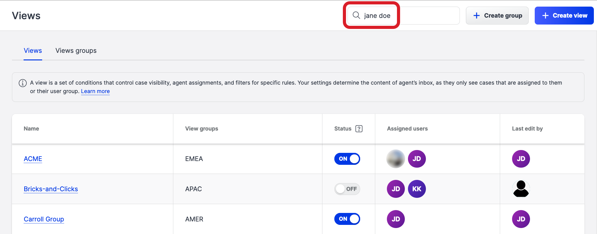 In Care, a case view is a set of conditions that help you organize individual cases. You can control visibility, agents' assignments, and filters to sort out your escalated cases.