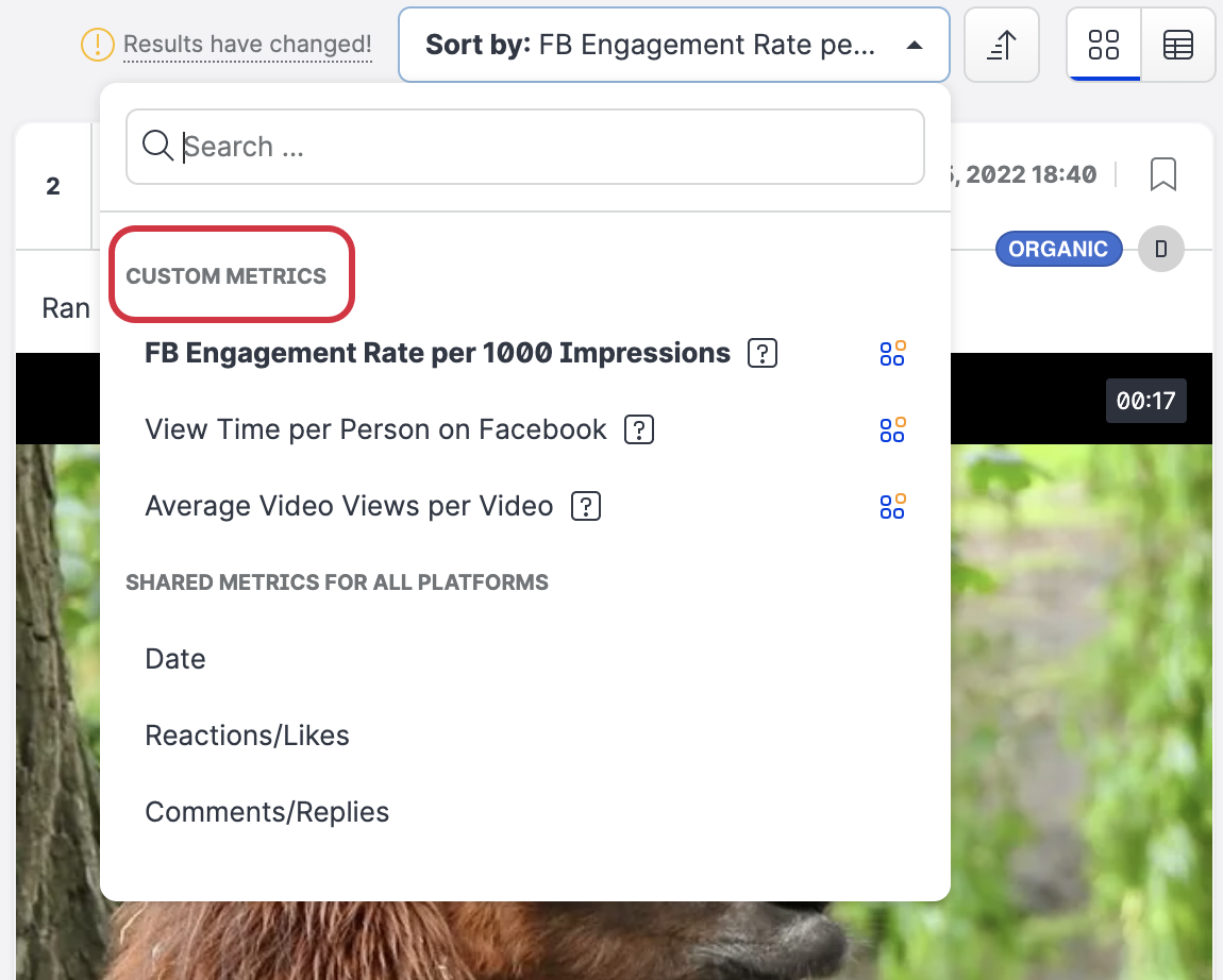 To quickly review your custom metrics processed data, simply click the Sort by box and select one of the Custom metrics.