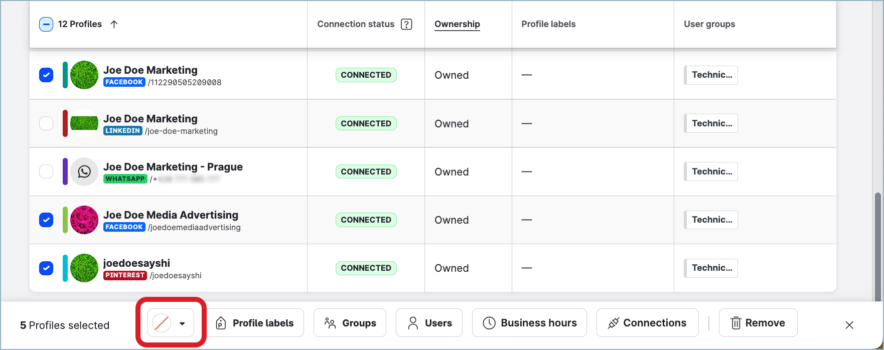 Select the profiles whose color code you want to update. You can filter the profiles to narrow down the selection (see Filter Profiles).