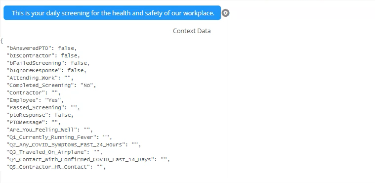 The Boolean and/or string variables that you enter and define in the Context Data section must already exist in the bot selected from the "Blast Channel" drop-down menu (i.e. the bot with which blast recipients have a conversation). For more information, see Variables.