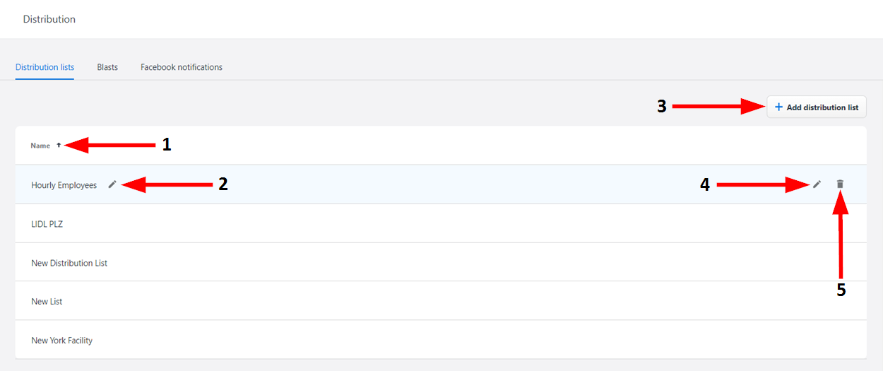 5 | Delete Distribution List | Click here to delete the distribution list. A dialog window will display to verify that you want to delete the distribution list.