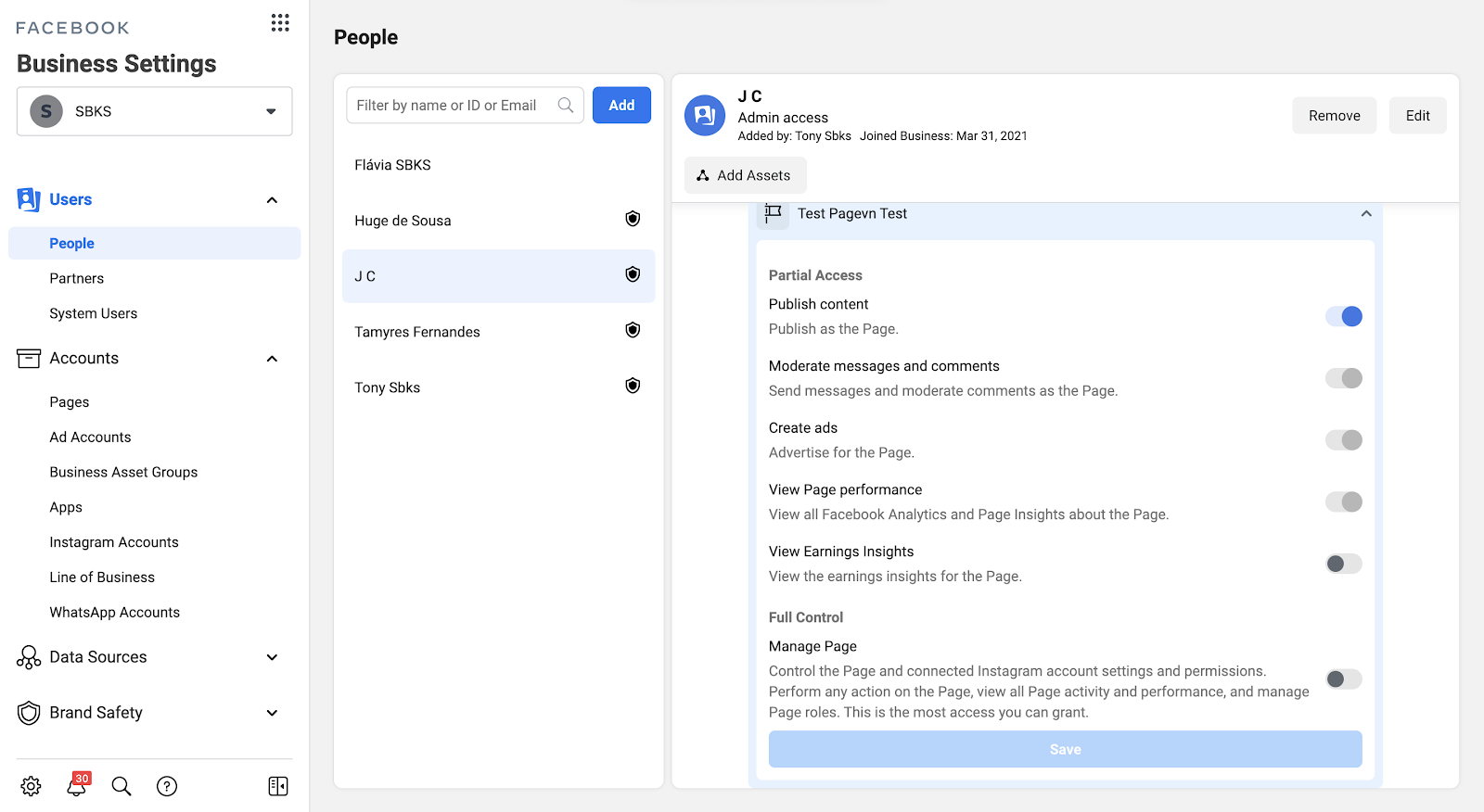 Check the correct Facebook Page Role through the Business Manager