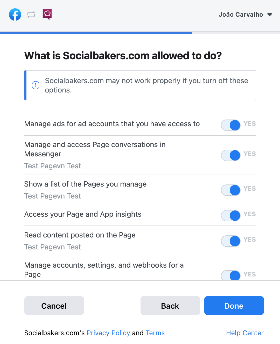 If you’re already logged in to a Facebook account in your browser, the login authentication step might be automatic, and the fill-in of the credentials won’t be necessary. This might cause trouble with the confirmation of the users’ page roles from Facebook in case you’re logged in to the incorrect Facebook profile