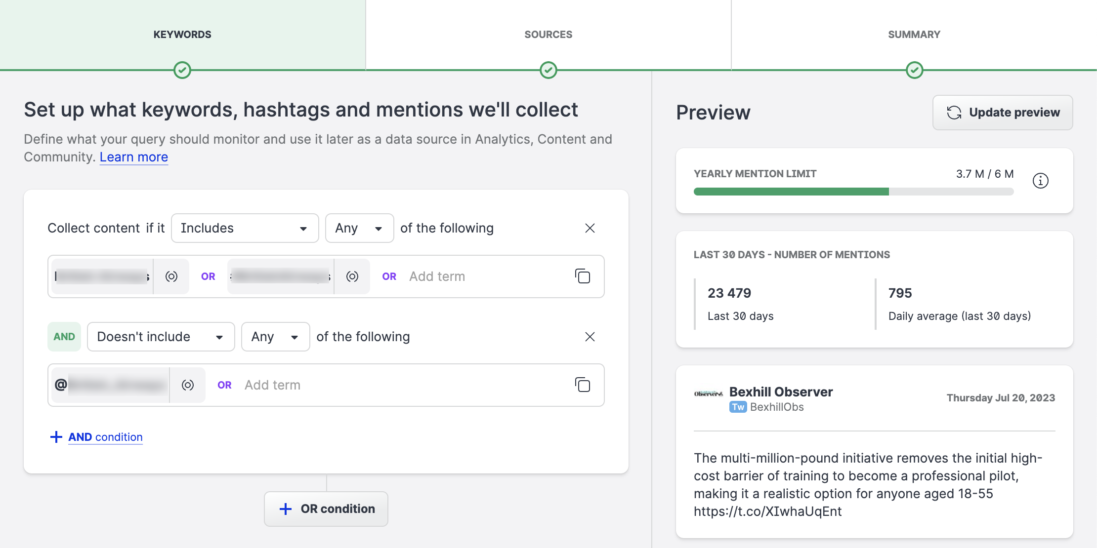 To avoid being overwhelmed by your customer’s mentions, learn how to fine-tune your queries.