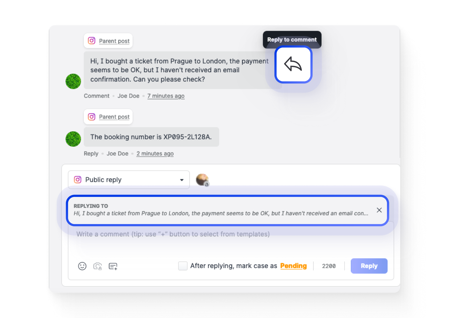 In Care, when posting a reply to a case, you can now choose a specific message to reply to.