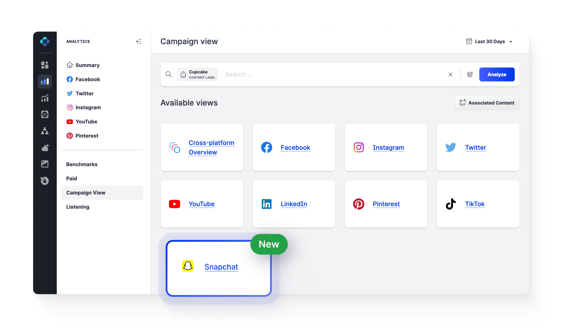 In addition, you can now analyze Snapchat content in the Campaign View of the Analytics module: