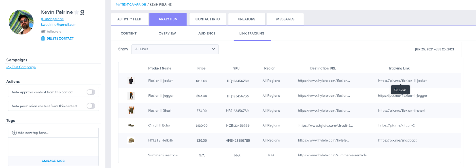 Link tracking provides users with the ability to add ROI tracking & measurement component to their creator campaigns run via Emplifi UGC.