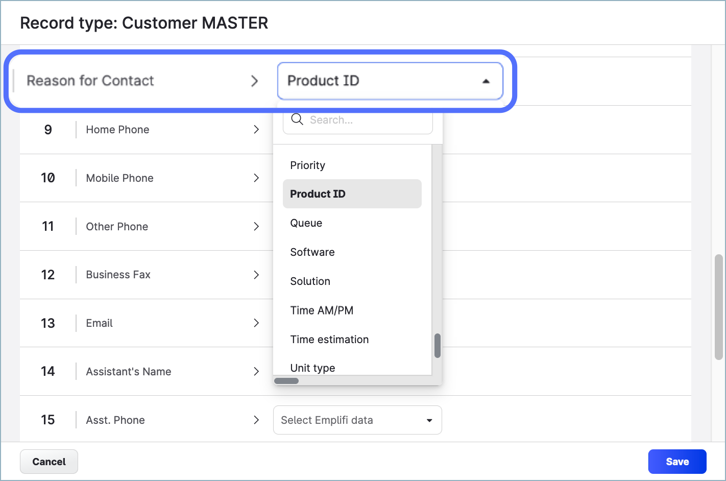 For example, if there is a product ID case field where a Care agent should enter the ID of the product that the customer has an issue with and there is a similar field in the customer’s details to fill in, you can have the customer field automatically pre-filled with the information from the case field. This way, the information is already there when you start creating a customer, and you do not have to fill it in manually.
