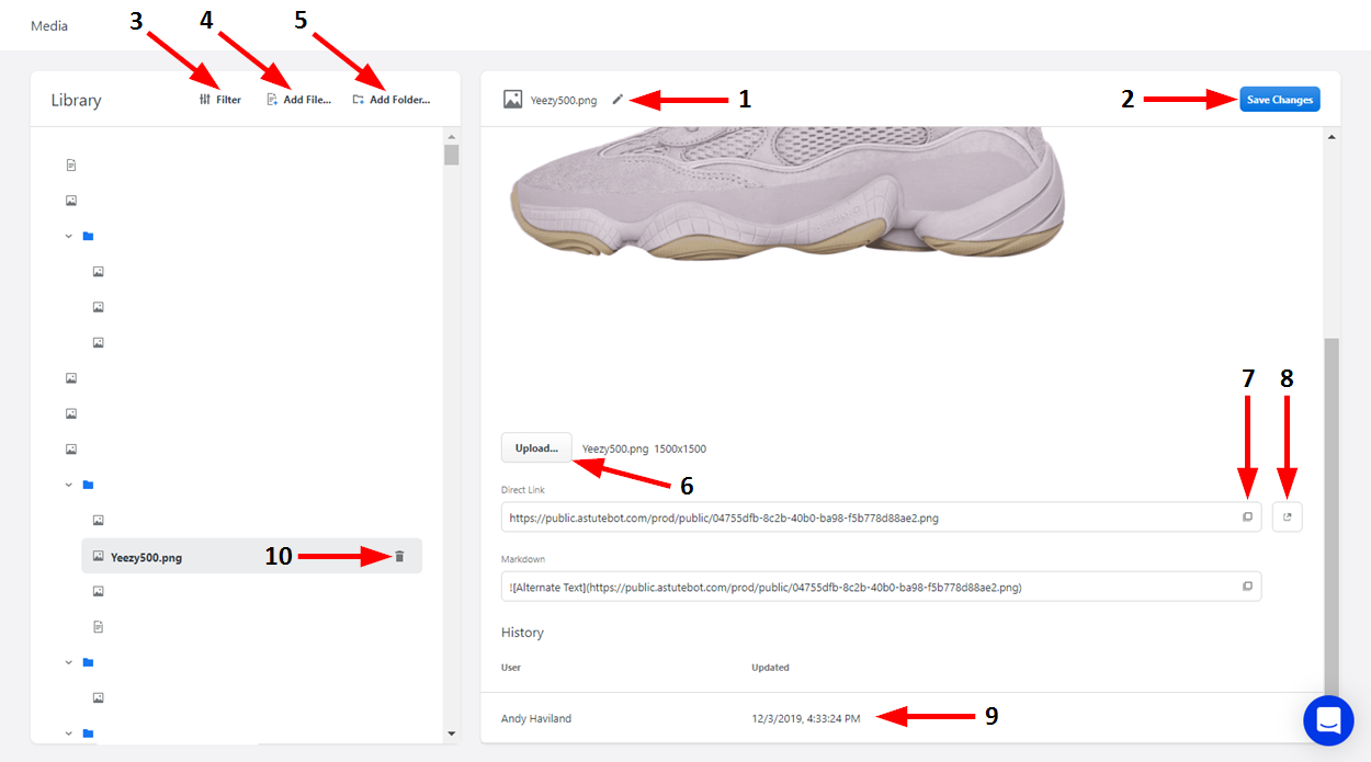 8 | Copy Image Link | Click here to copy the file link displayed in the adjacent Direct Link text field. |