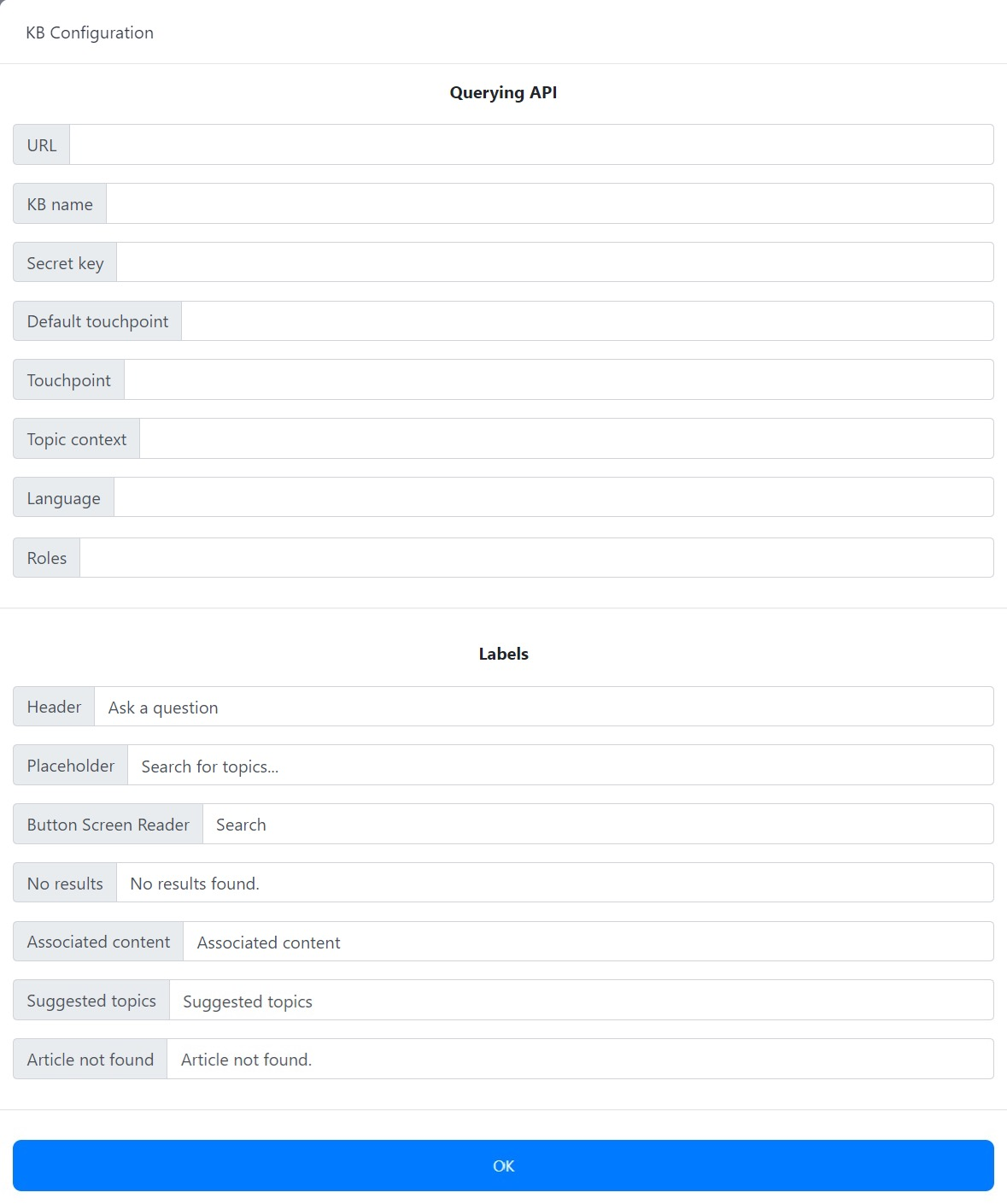 When you are finished configuring the KB app, click OK at the bottom of the window.