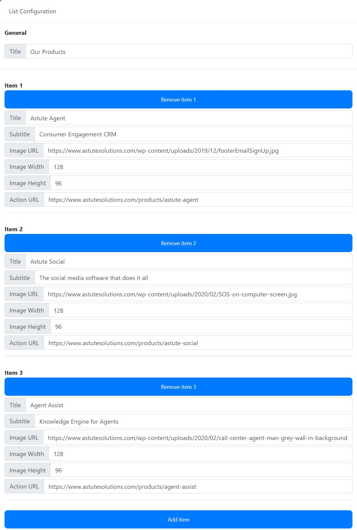 Action URL: Enter the URL address to which users are taken when they click the item.