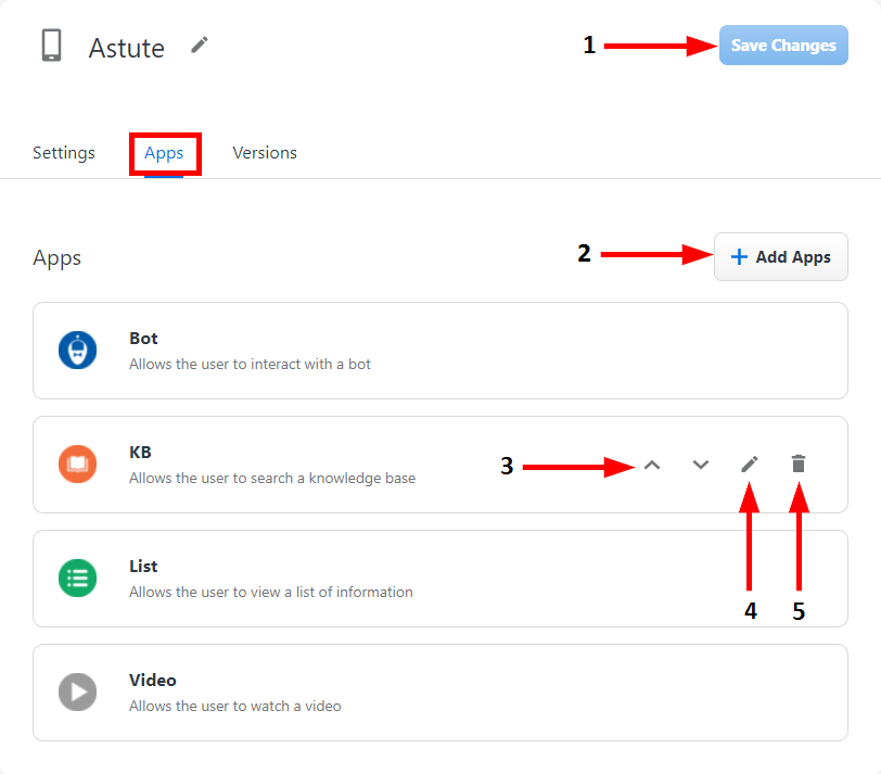 There are four types of content apps that you can add to your messenger: Bot, Knowledge Base, List, and Video.