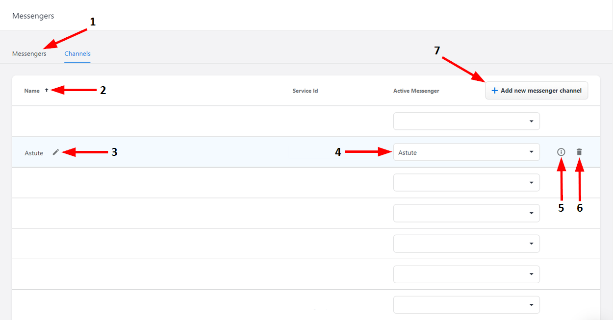 4 | Active Messenger | Click here to open a drop-down list, from which you can select the messenger actively operating on this channel. |