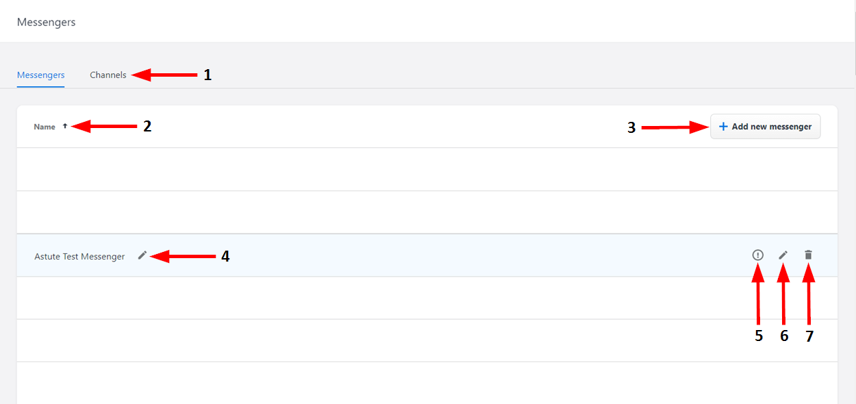 1 | Rename | Click here to enter a new name for the messenger. To save the name, click Enter or click outside the text field. |
