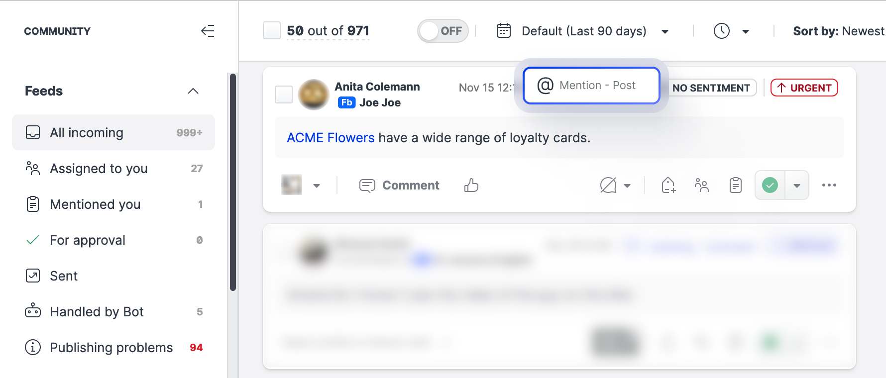 Community now catches mentions of your brand on Facebook and presents them in the All incoming feed.