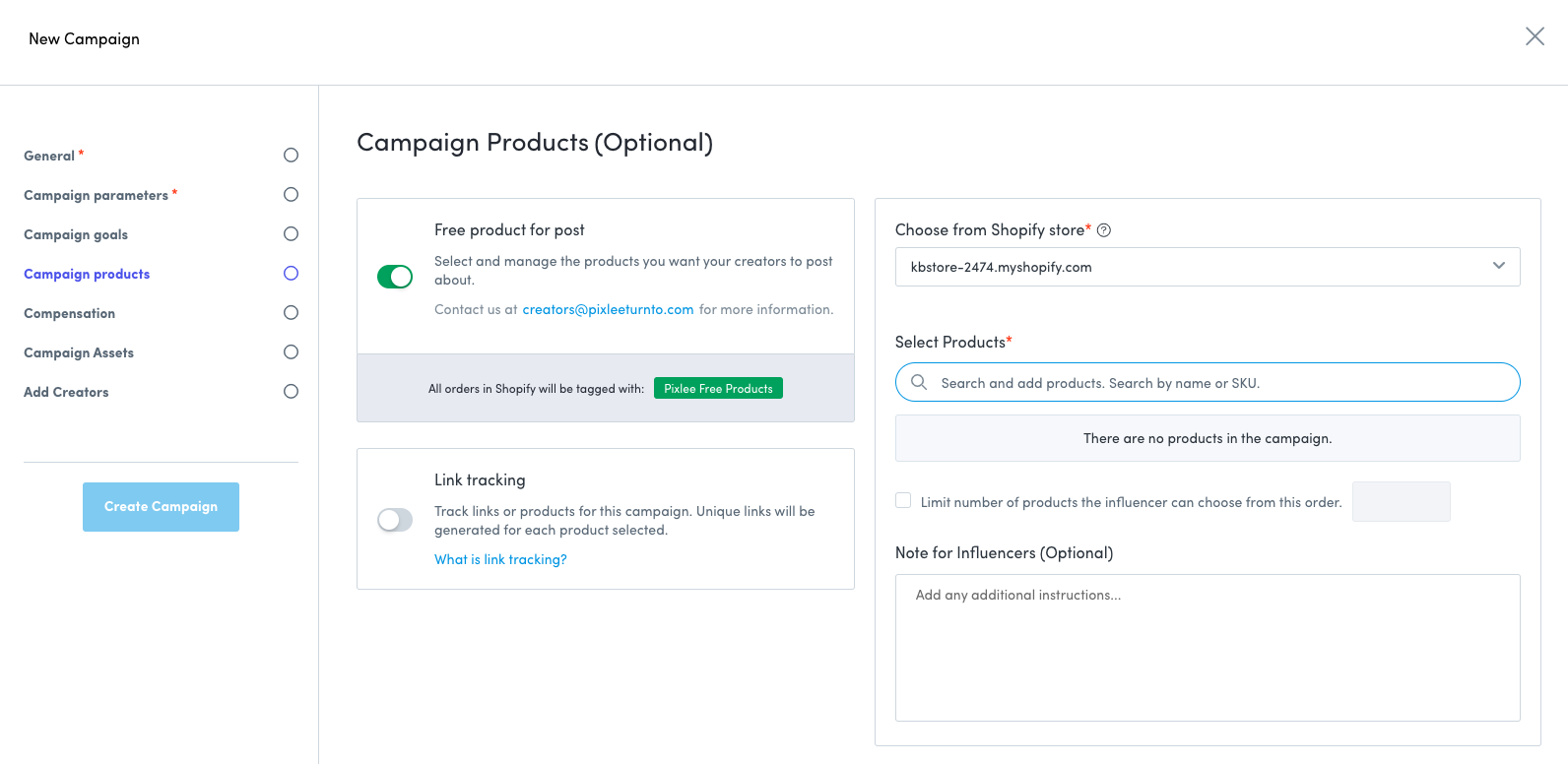 When joining the campaign, Creators will only be able to choose a number of items up to the limit.(Optional) Turn on link tracking. To learn more, see Track Links in a Campaign.