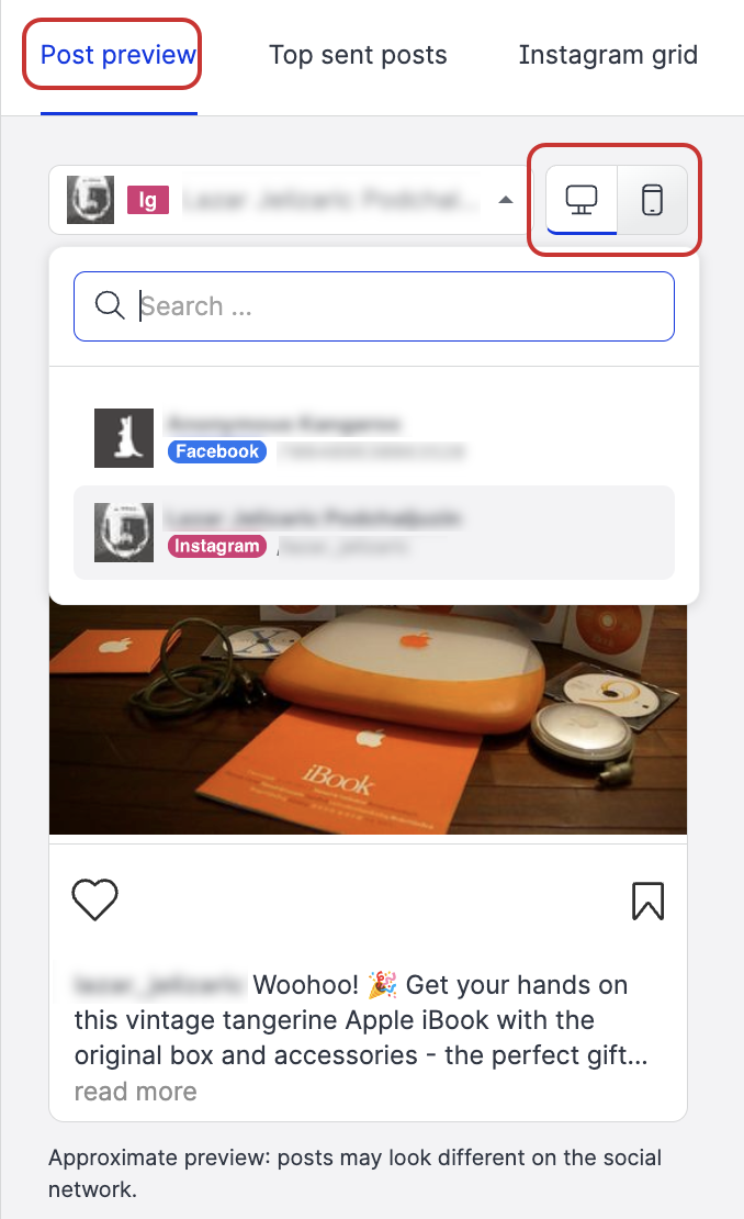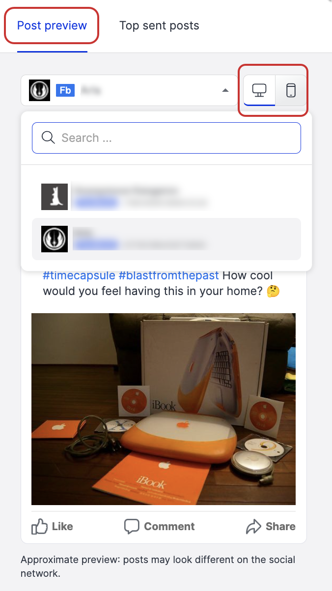 Review the post’s appearance for each of the chosen profiles using the Post preview menu.