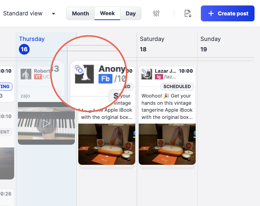 To review the post, simply click any of its calendar representation to open the Scheduled posts slider.