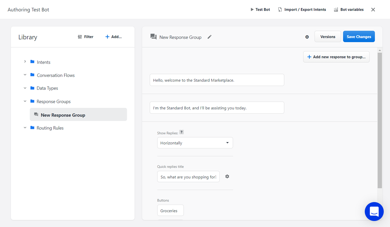 On the Bot Authoring page, you can create and configure response groups, which allow you to author multiple replies for one node. This means that your bot will return stacked replies to the user, mimicking the way humans tend to message each other and providing a more natural engagement for the user.