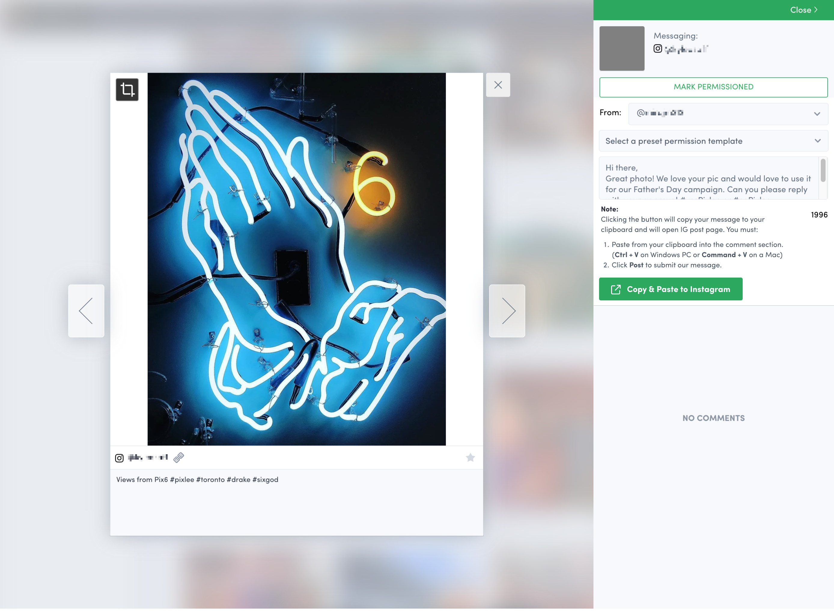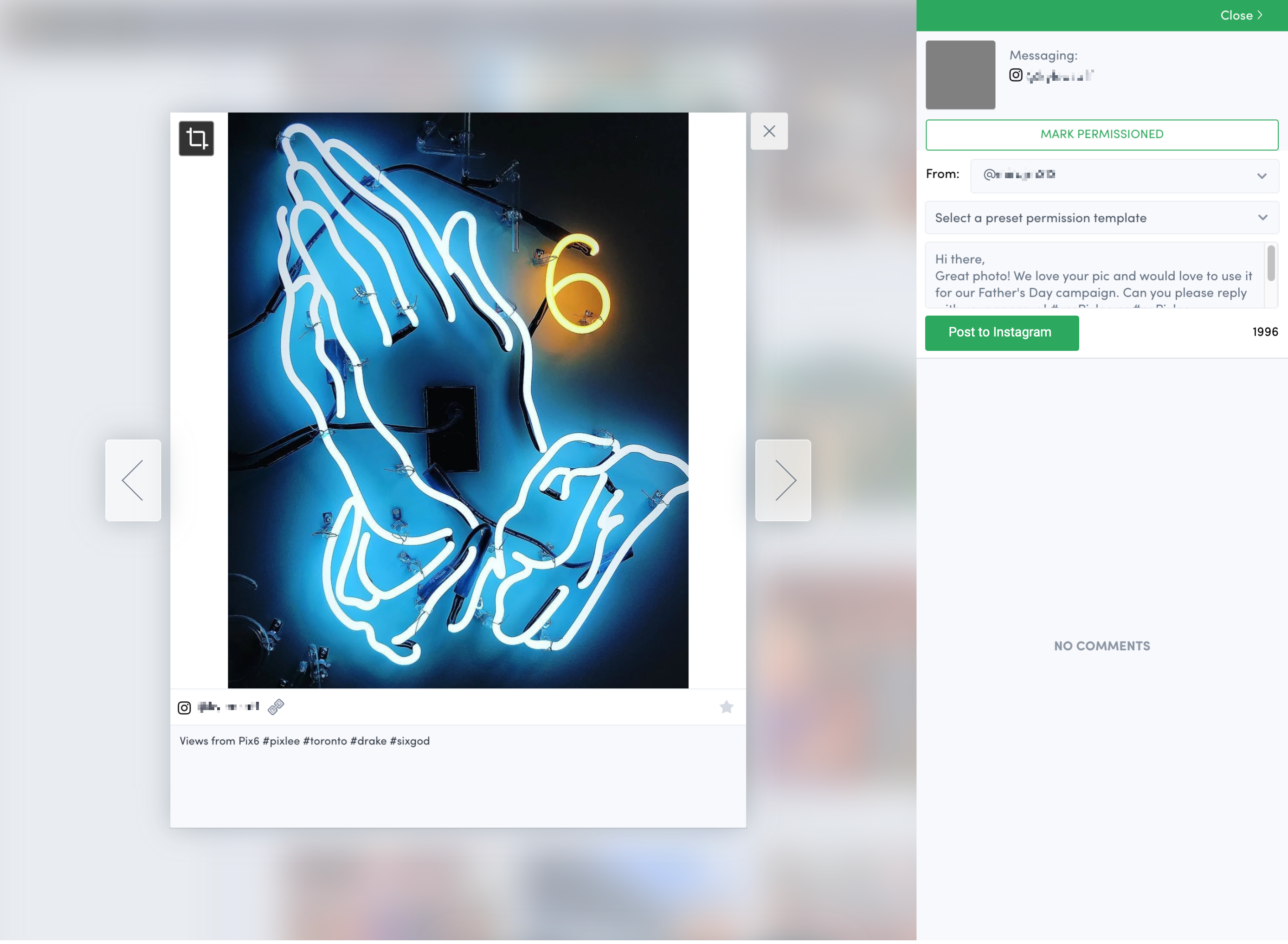 Before you use any user-generated content (UGC) on your website, in your emails, social profiles, or other channels, you must first request permission from the original poster. How you request permission depends on the social media network the content originates from and what the network’s API limitations are.