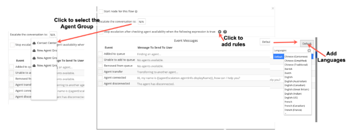 From the Escalate the conversation drop-down menu, choose an Agent Group.