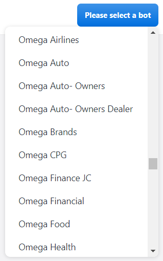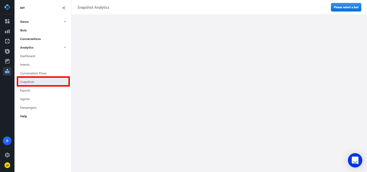In the upper right corner of the Snapshot Analytics page, click Please select a bot. A drop-down menu appears.