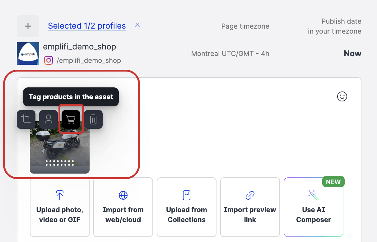 You can access, search, and tag products from your Instagram Shop within Publisher.