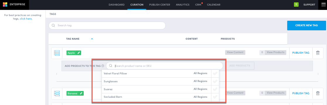 Assign products to tags through a tag product tree, so content with assigned products is automatically categorized to the tags.
