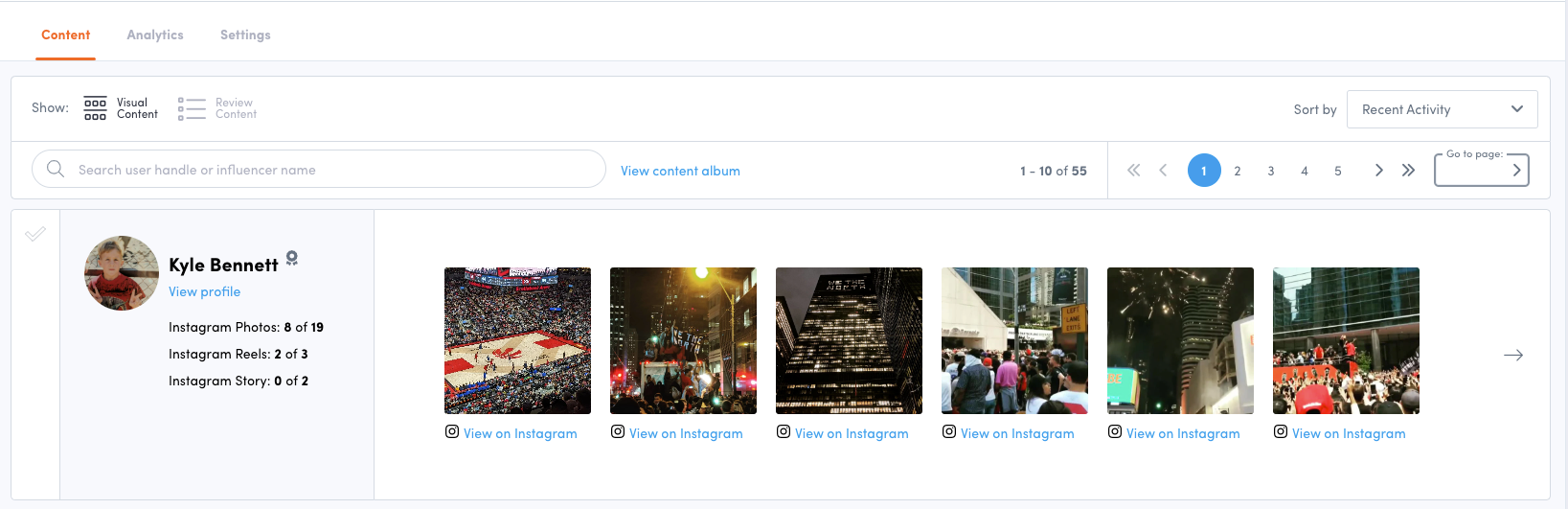 Once your campaign has begun, content posted by your creators that matches your campaign parameters will be collected into your campaign and its corresponding album.
